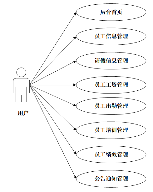 管理员端功能则更为全面,涵盖后台首页、系统用户管理、员工信息管理、部门信息管理、请假信息管理、员工工资管理、员工出勤管理、员工培训管理、员工绩效管理、公告通知管理以及公告类型管理等。管理员可以通过这些模块对员工信息、部门设置、请假记录、工资、绩效、出勤等进行全面管理,确保数据准确性与操作便捷性。