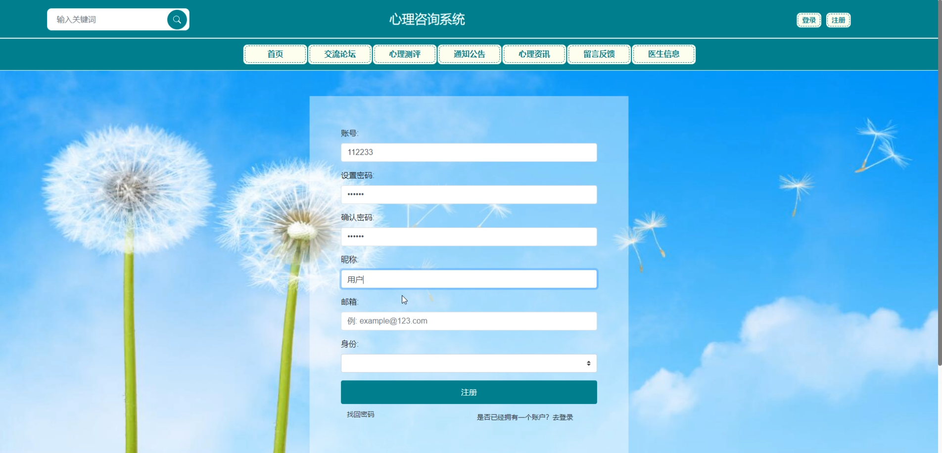This system not only improves the accessibility and convenience of psychological counseling, but also enhances the interaction and communication between users and doctors, promotes the popularization of mental health knowledge, and promotes the development of the psychological counseling industry towards a more intelligent and efficient direction, in order to better serve the psychological health needs of the general public.