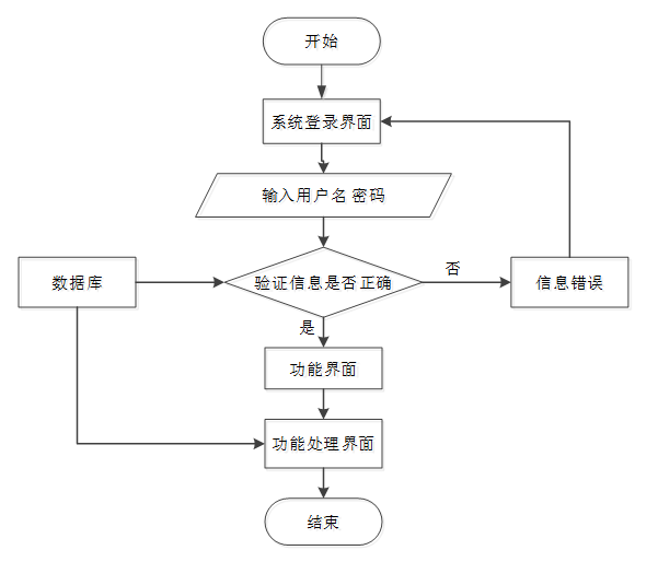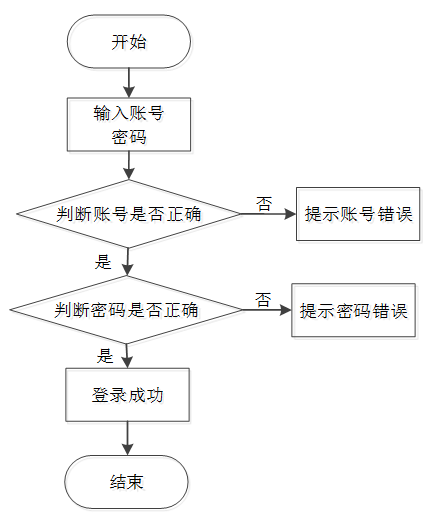 用户访问系统,进入登录页面,输入其账号和密码,后端服务接收登录请求,验证用户提供的账号和密码是否匹配数据库中存储的信息,验证通过即可登录成功。登录流程图如下图所示。