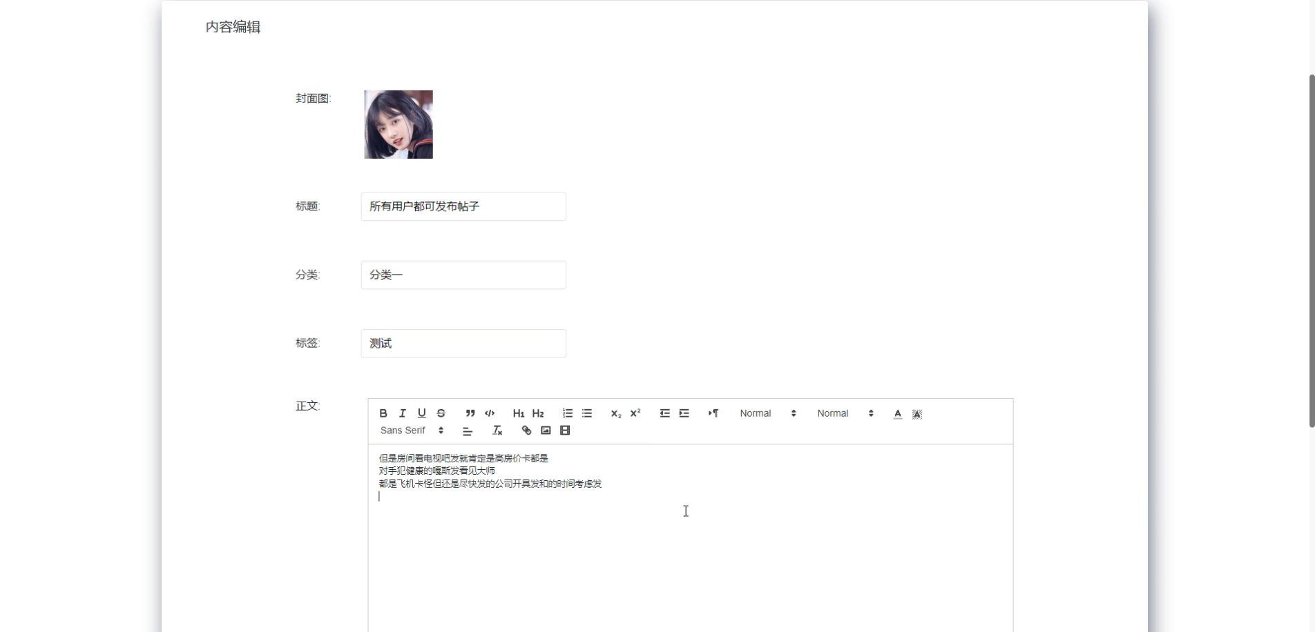 在交流论坛,普通用户和心理医生都可以查看其他用户发布的帖子,可进行点赞和评论,也可在此点击发布内容,填写内容,如标题、标签、分类和正文等信息,确认发布帖子。发布内容界面如图5-3所示。