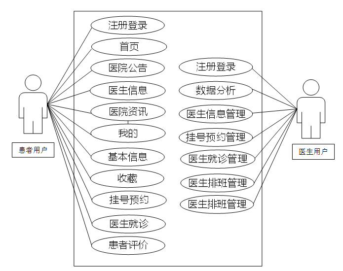 系统设计应该着眼于满足用户和管理者的需求,以确定其所需的功能、管理任务以及其他相关的服务。患者用户、医生用户和管理员功能如下: