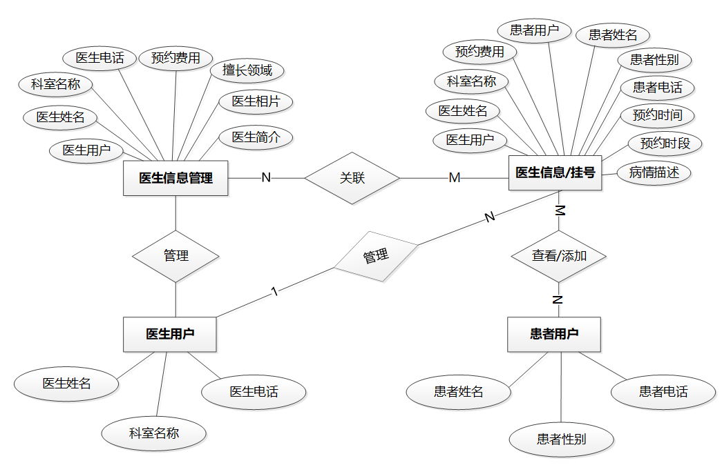 (5)医生信息:用户点击可通过搜索医生姓名和课时名称进行查看医生信息列表,点击进入需要挂号的医生可查看详情信息,可对医生信息进行点赞、收藏和评论。可点击“挂号”按钮填写挂号信息,包括预约时间、预约时段、病情描述。(医生用户、医生姓名、科室名称、预约费用、患者用户、患者姓名、患者性别、患者电话、预约时间、预约时段、病情描述)