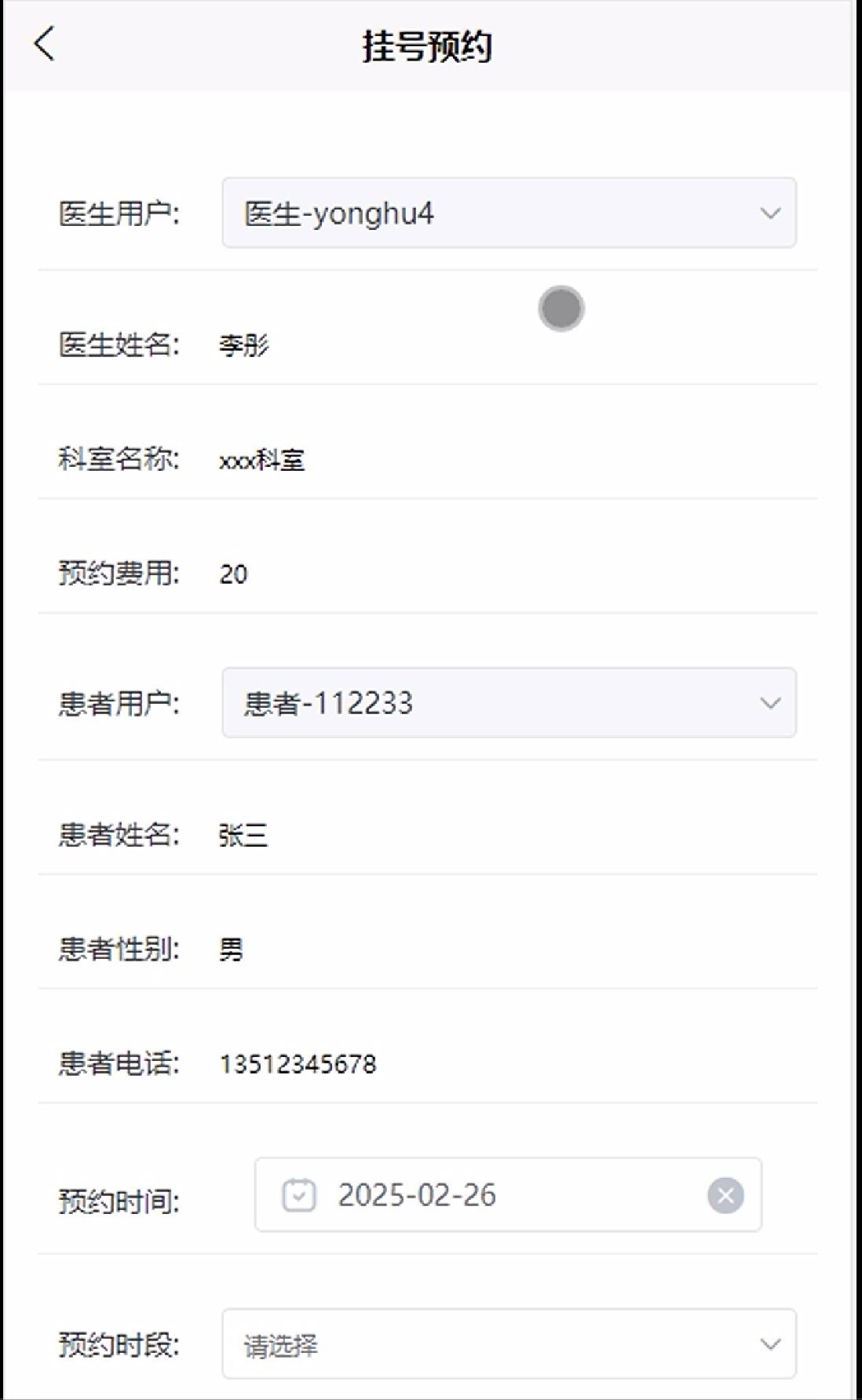 The hospital appointment registration system aims to optimize the patient's medical experience and improve the efficiency of medical services through information means. The system not only provides patients with convenient online registration services, but also integrates the functions of doctor information inquiry, hospital announcement release, hospital information browsing, etc., to help patients fully understand medical resources. Patients can register and log in to manage their personal data, view appointment records, pay registration fees, and evaluate doctors after a visit. At the same time, the interaction design of the system focuses on user experience and supports personalized functions such as collecting doctor information and information content, so that patients can plan the medical treatment process more efficiently.