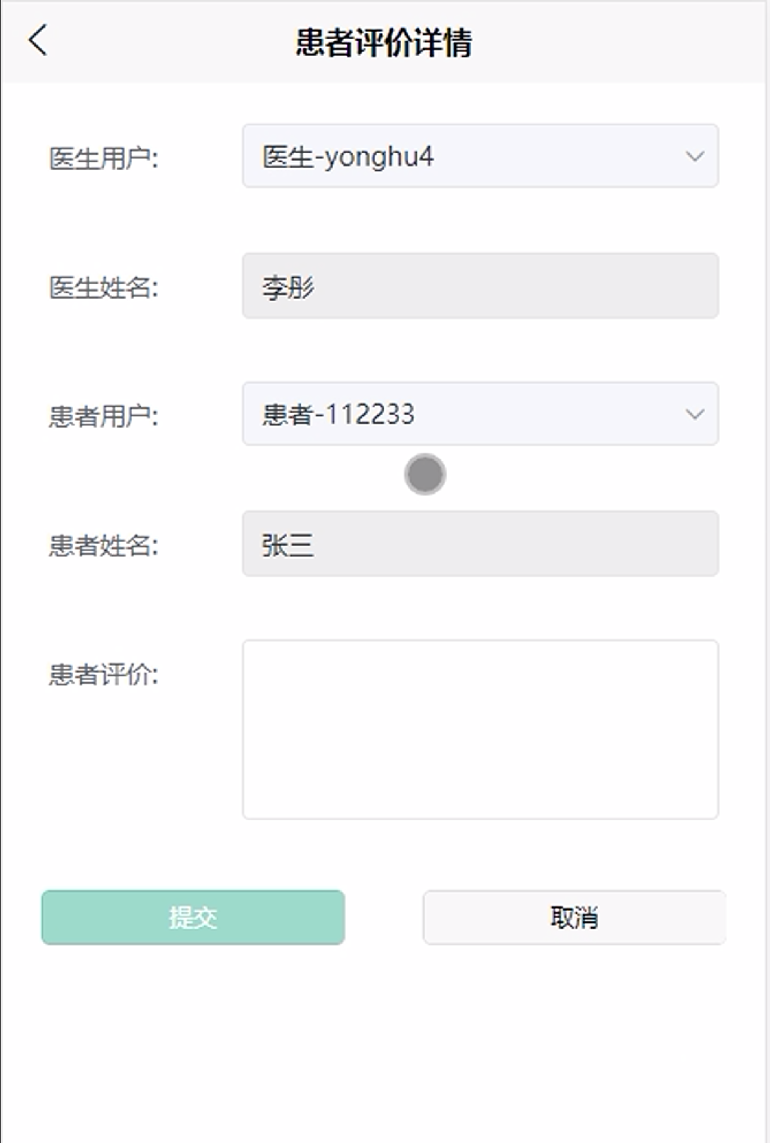 (6)患者评价管理:医生用户点击可查看患者评价列表。