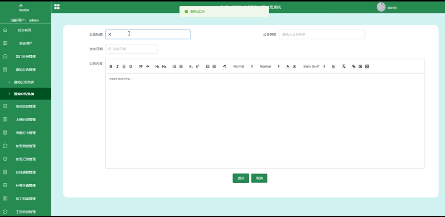 管理员通知公告添加界面如下图: