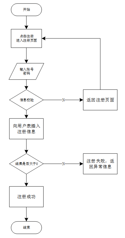 注册的过程,第一部分是账号的注册,第二部分是信息完善。在业务开展过程中,管理员可对用户信息进行修改等管理操作,注册流程如图3-3用户注册流程图所示。