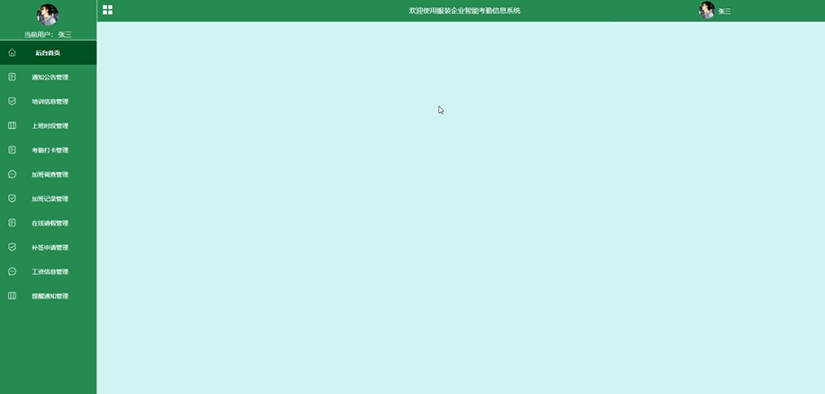 后台首页:员工登录系统后首先访问的页面,提供快速导航至其他功能模块的入口,展示重要信息概览,如最新的通知公告、待处理事项等。