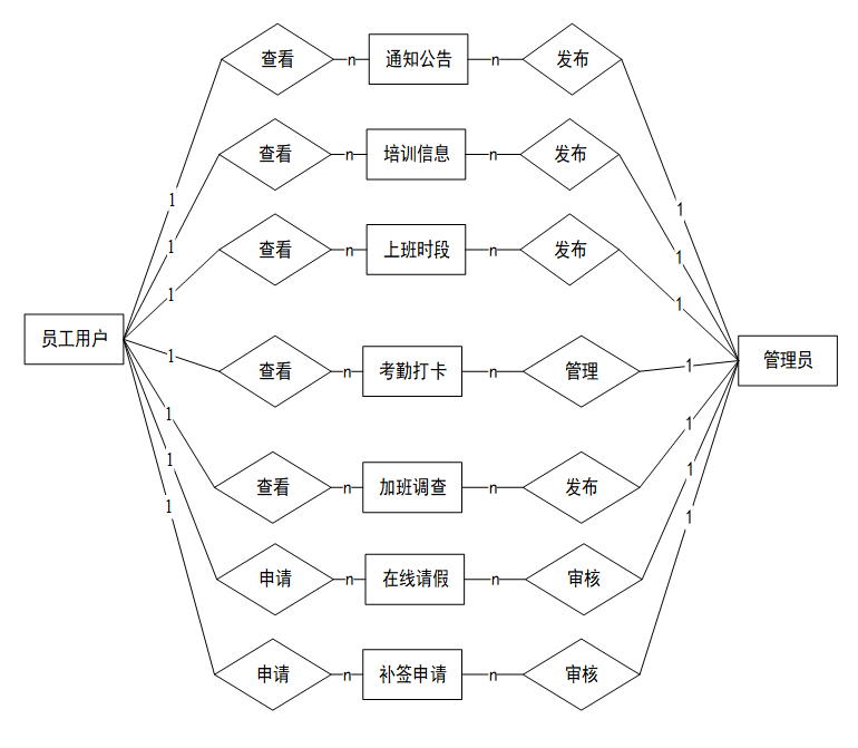 根据使用该系统的用户角色可以划分为员工用户和管理员,具体如下所示。
