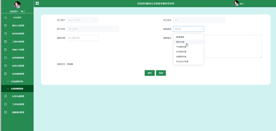 图5-11 员工用户在线请假界面