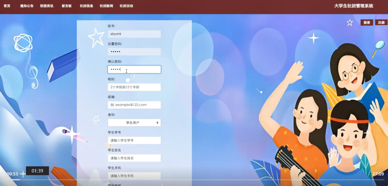 关键词:大学生社团管理系统 ;SSM;Vue;MySQL