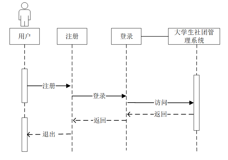 用户通过注册模块发送注册请求,系统完成注册后返回确认信息。随后,用户通过登录模块发送登录请求,系统验证用户信息后允许访问目标系统。用户完成操作后可选择退出,系统终止会话。注册时序图,如图4-3所示。