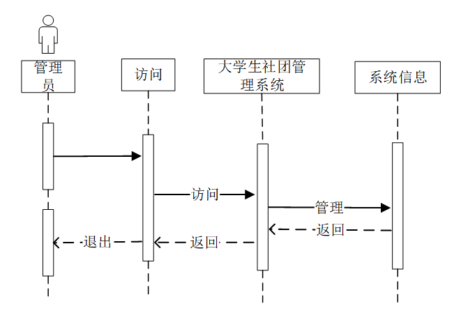 管理员通过访问系统发起请求,系统接收访问后转向系统信息模块进行管理操作。管理完成后,系统返回管理结果至系统,最终反馈给管理员,管理员可选择退出。管理员管理系统信息时序图如图4-6所示。