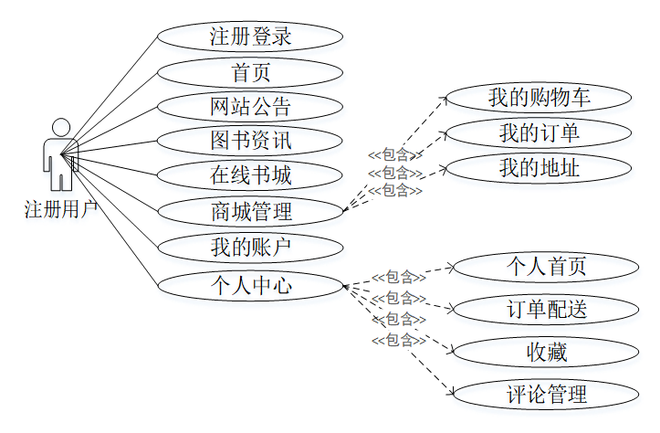 基于java的网上书城系统的注册用户角色用例图如下图 3-1所示。