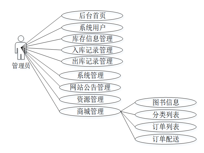 基于java的网上书城系统的管理员角色用例图如下图 3-2所示。