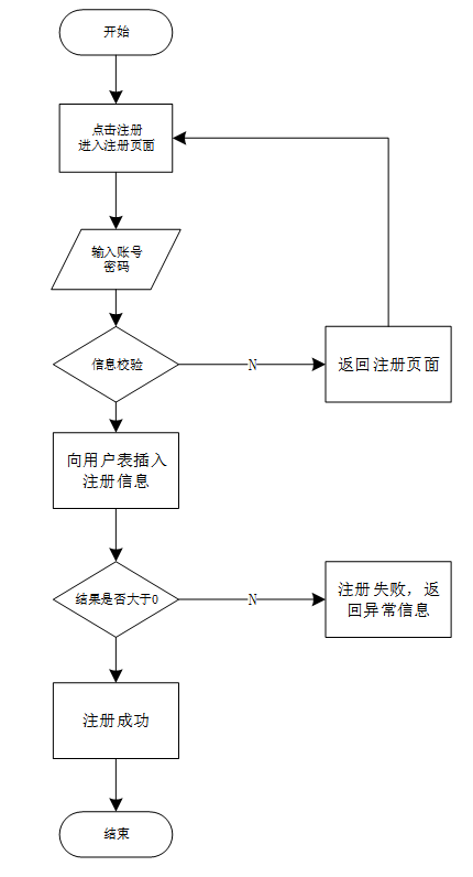 注册的过程,第一部分是账号的注册,第二部分是信息完善。在业务开展过程中,管理员可对用户信息进行修改等管理操作,注册流程如图 3-3所示。