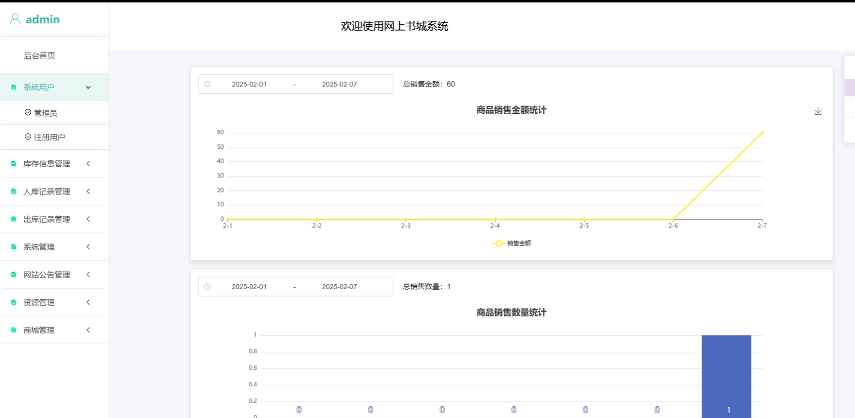 后台首页:展示平台关键数据统计,如用户数、车品购买量、订单量统计等。支持图表化展示以辅助决策。