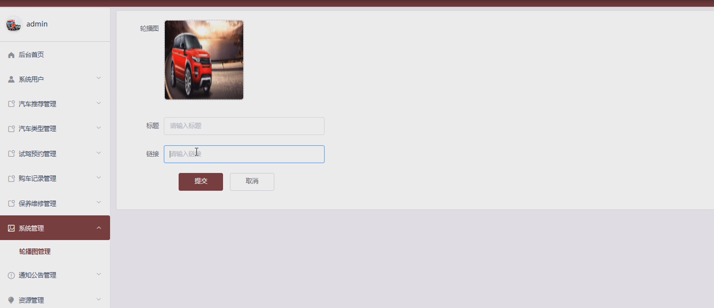 系统管理:管理员配置首页轮播图内容,支持图片上传和链接设置。