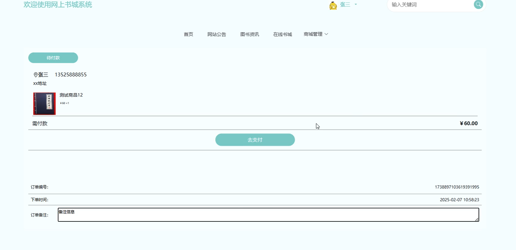 | TC003 | 验证未输入订单备注,点击提交 | 1. 进入在线书城下单界面 <br> 2.未输入订单备注,点击提交 <br> 3. 点击提交按钮 | 提示请输入订单备注 | 提示请输入订单备注 | 通过 |