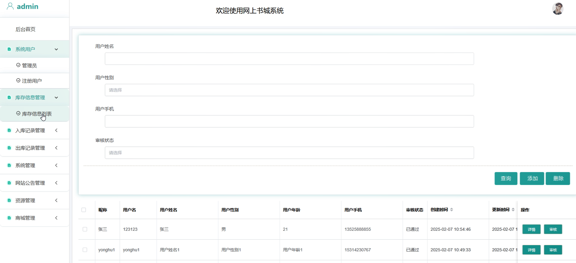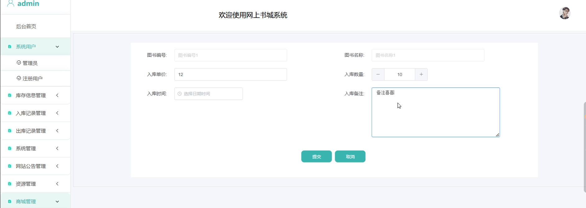 库存信息管理:管理更新图书库存记录信息,可以进行增删改查的操作。