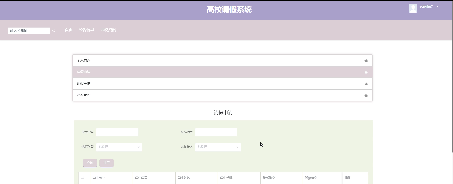 - 请假申请:院领导能够审查学生提交的请假申请,基于详细情况作出审批决定;