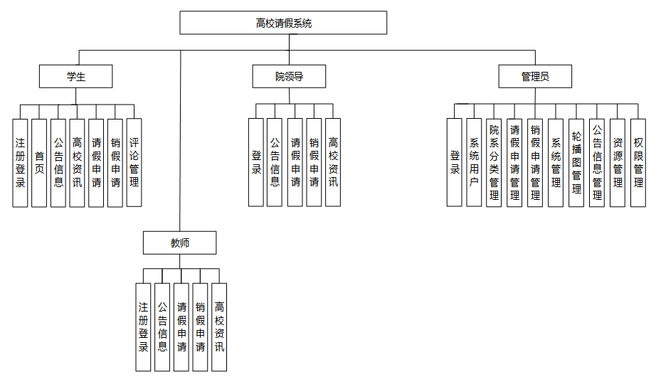 高校请假系统基于Spring Boot框架设计与实现,目标是通过有效简化请假流程的效率。系统涉及四类主要用户:学生用户、教师用户、院领导用户以及管理员。以下将详细阐述这四类用户的功能模块。