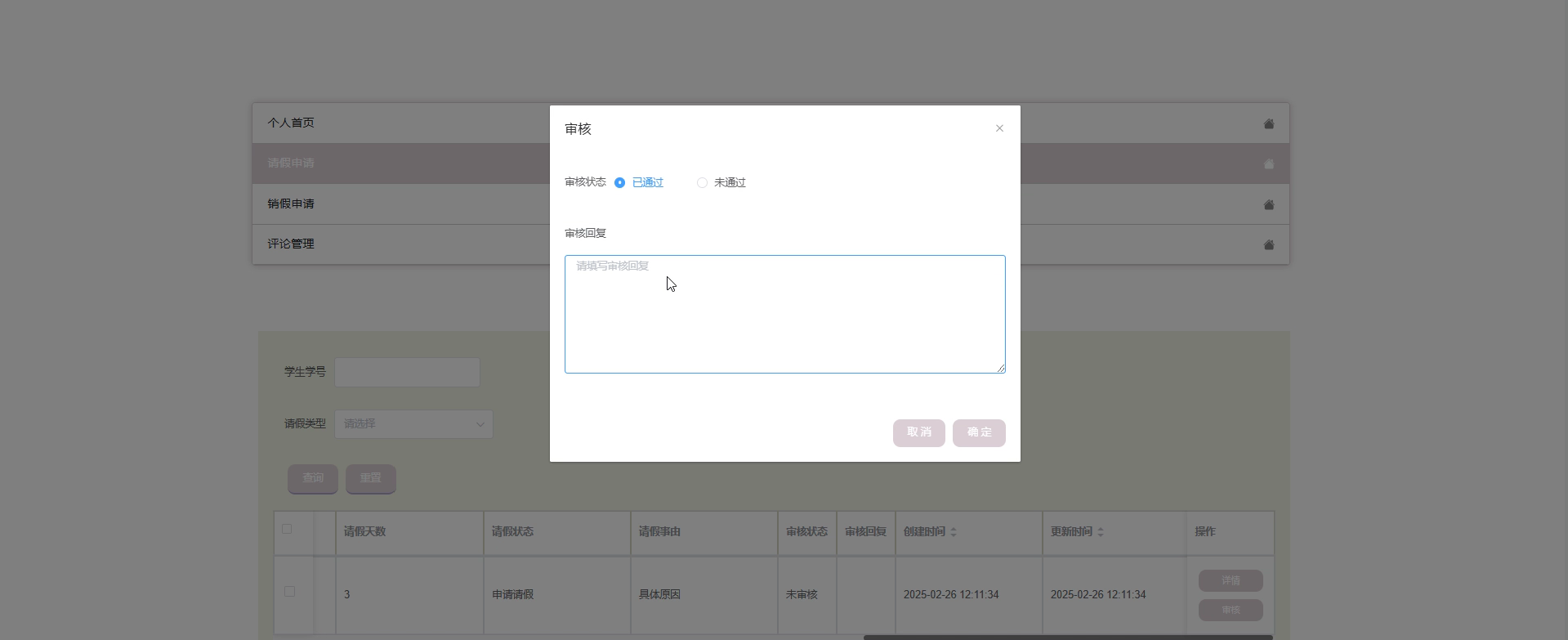 - 请假申请:允许教师在线审查学生的请假请求,根据具体情况进行批准或拒绝;