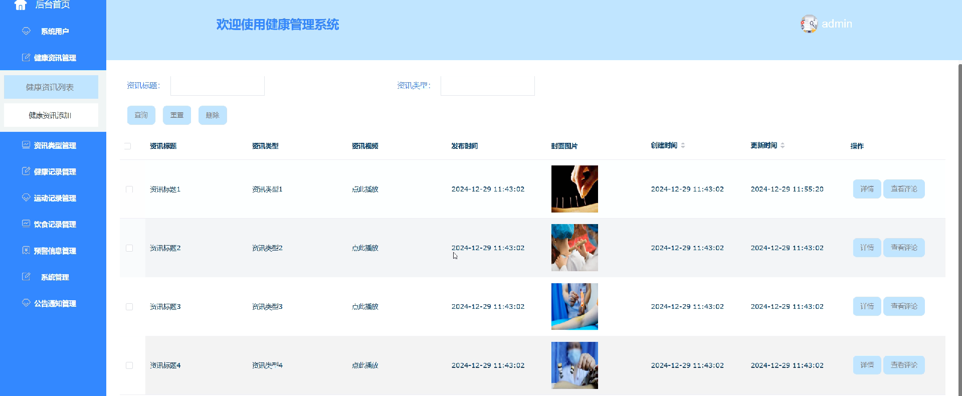 健康资讯管理:管理员可以发布最新健康资讯内容。