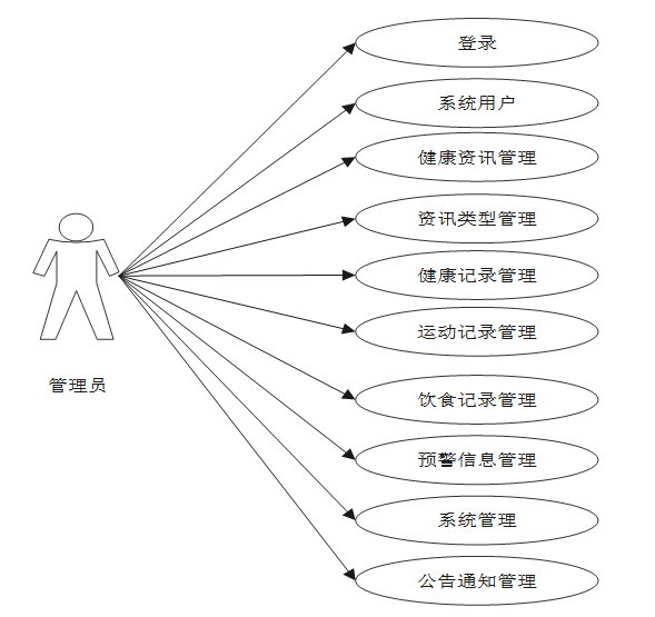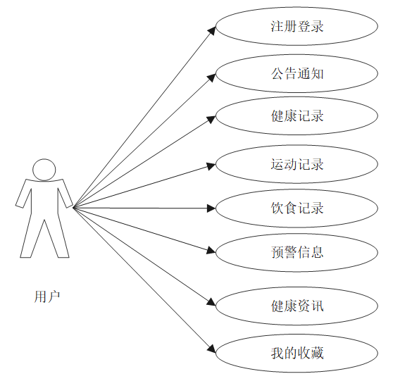 基于微信小程序的健康管理系统用例分析主要从用户和管理员这些实体展开描述。