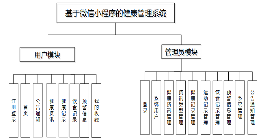 基于基于微信小程序的健康管理系统主要分为用户和管理员两个角色,主要功能如下: