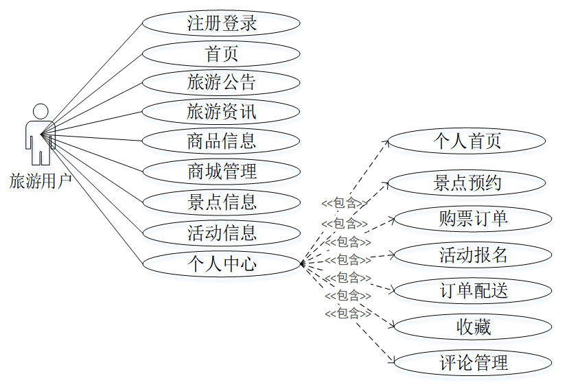 沧州市园博园商业文旅管理系统的旅游用户角色用例图如下图 3-1所示。