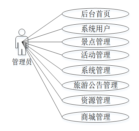 沧州市园博园商业文旅管理系统的管理员角色用例图如下图 3-3所示。