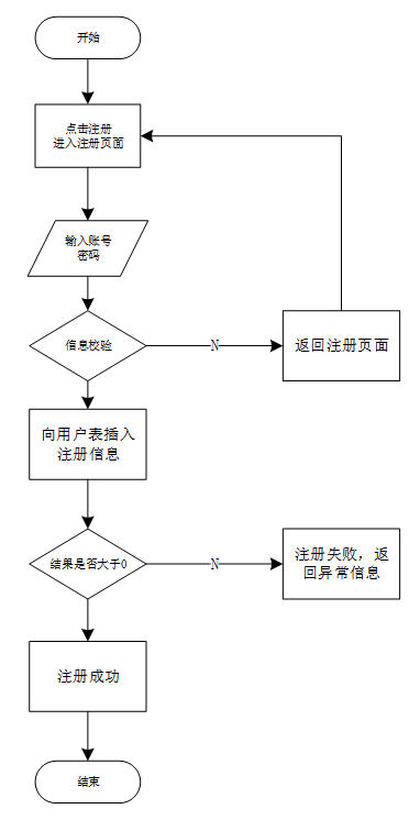 注册的过程,第一部分是账号的注册,第二部分是信息完善。在业务开展过程中,管理员可对用户信息进行修改等管理操作,注册流程如图 3-4所示。