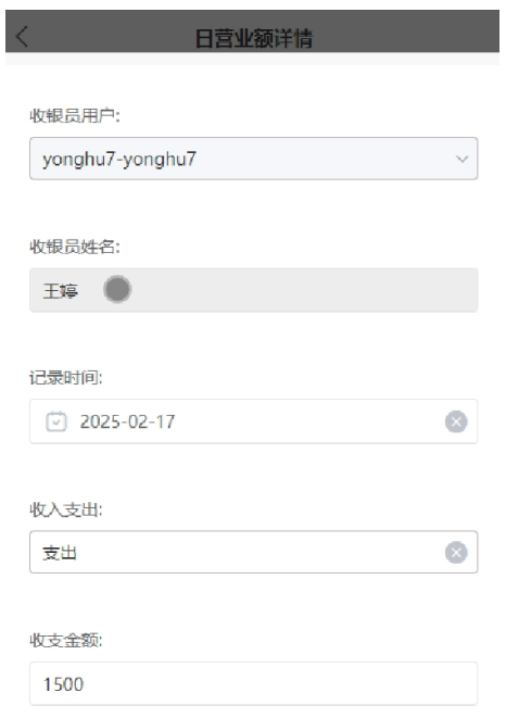 小程序端的收银员点击“日营业额”界面,可以对餐厅的当日收银数据进行统计操作。