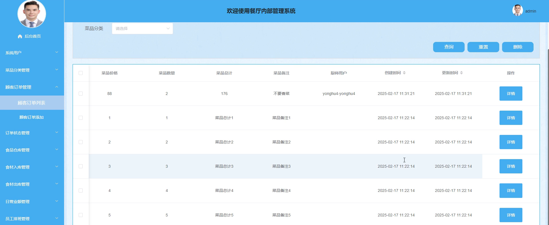 Key words: Restaurant internal management system; SpringBoot; MySQL; order management
