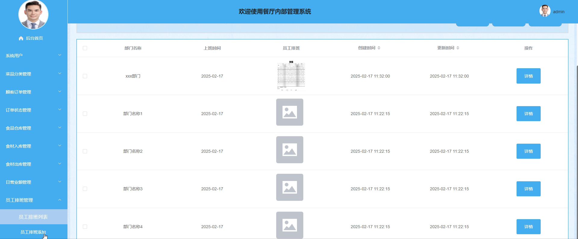 管理员可以负责对服务员、厨师、收银员等的排班发布。