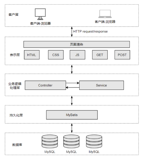 B/S(Browser/Server)架构是一种基于浏览器和服务器的系统架构模式,用户通过浏览器与服务器进行交互。B/S架构简化了客户端的部署和管理,用户无需在本地安装复杂的软件,只需使用标准浏览器即可访问应用程序。服务器端负责处理业务逻辑和数据存储,客户端则主要负责展示用户界面和数据交互。B/S架构的设计使得系统更新和维护集中在服务器端,降低了维护成本[7]。