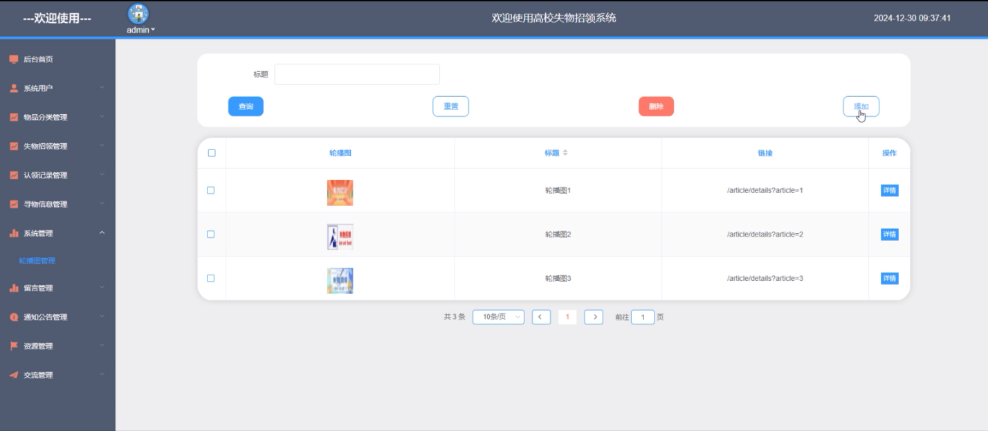系统图管理:管理员可以添加、编辑、删除轮播图内容,用于在平台首页展示重要通知或活动信息,吸引用户关注。
