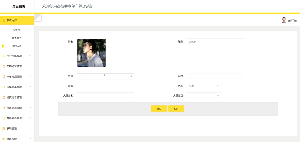 共享单车管理:对共享单车进行新增、编辑、删除和状态管理等操作。