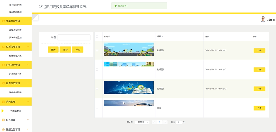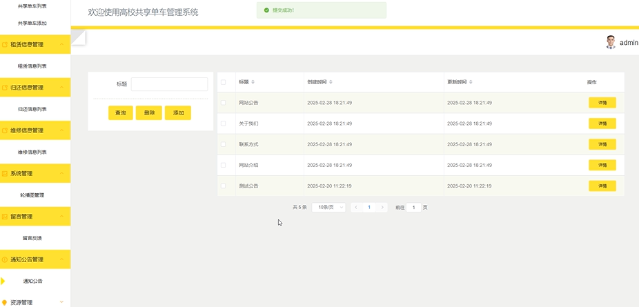 共享单车管理:对共享单车进行全面的新增、编辑、删除和状态管理。