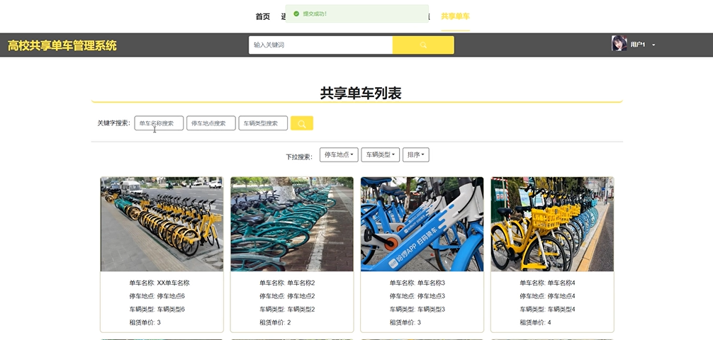 关综上所述,高校共享单车管理系统以PHP技术为核心,实现了单车的高效管理和便捷使用。系统的开发和应用,不仅提高了校园内共享单车的利用率,也为学生和教职工提供了更加便捷、安全的出行方式。未来,我将继续优化系统功能,提升用户体验,为高校校园出行贡献更多力量。