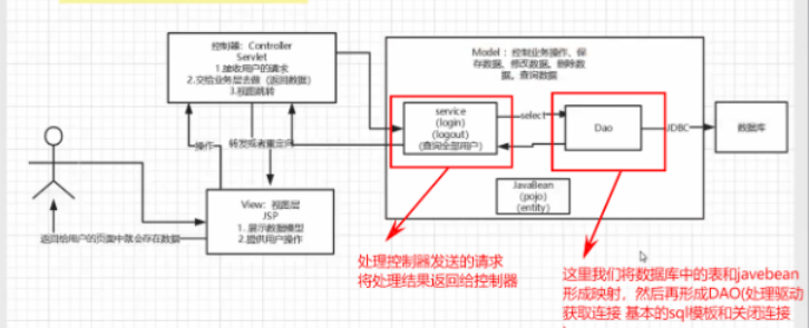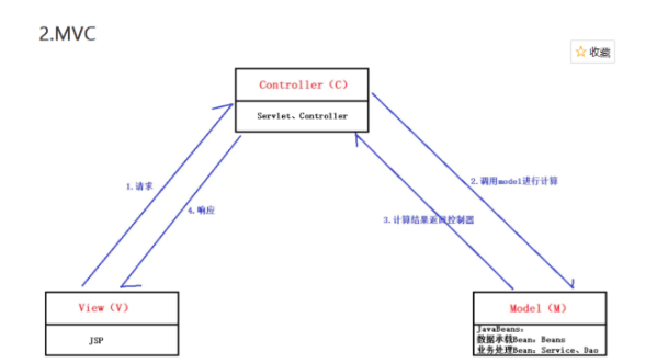 Model:模型,承载数据,并对用户提交请求进行计算的模块。其分为两类: 一类称为数据承载 Bean:实体类,专门用户承载业务数据的,如 Student、User 等一类称为业务处理 Bean:指 Service 或 Dao 对象,专门用于处理用户提交请求的。