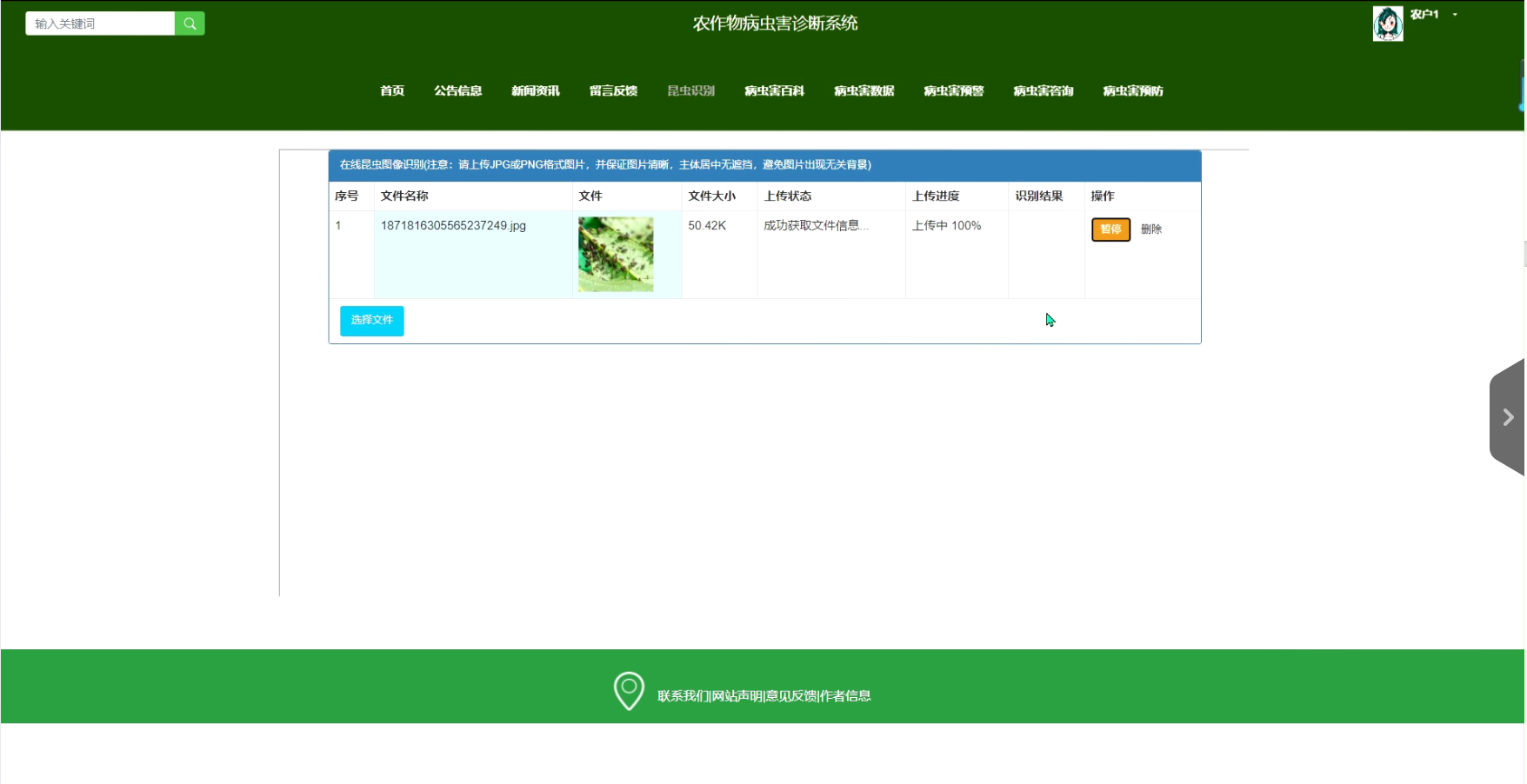 昆虫识别:用户可以上传昆虫照片,实现在线昆虫图像识别。界面如下图所示。