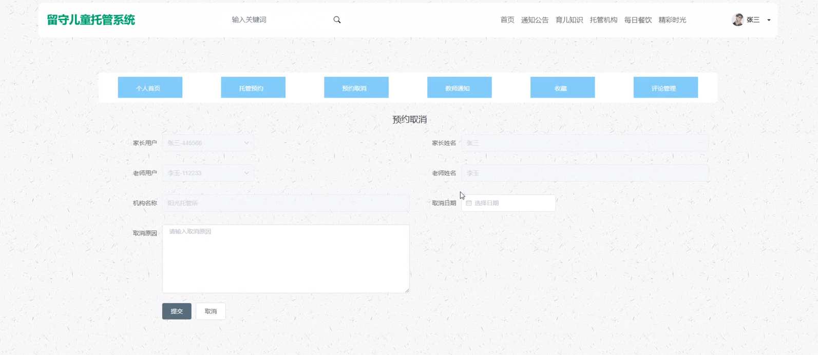 - 预约取消:老师可以查看家长用户取消的预约信息并进行审核回复,确保预约信息的准确性。