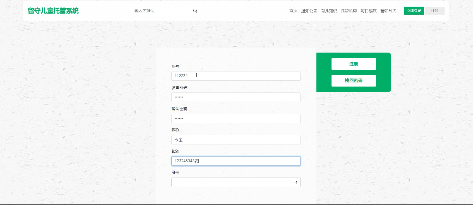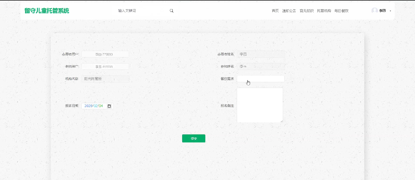 The design and implementation of this system aims to improve the management efficiency and transparency of left behind children's care services through information technology, enhance communication and collaboration between parents and care institutions, and ensure the daily care and education of left behind children. At the same time, the system provides parents with convenient management and feedback channels, which helps to timely understand their children's situation and improve the overall well-being and safety of left behind children.