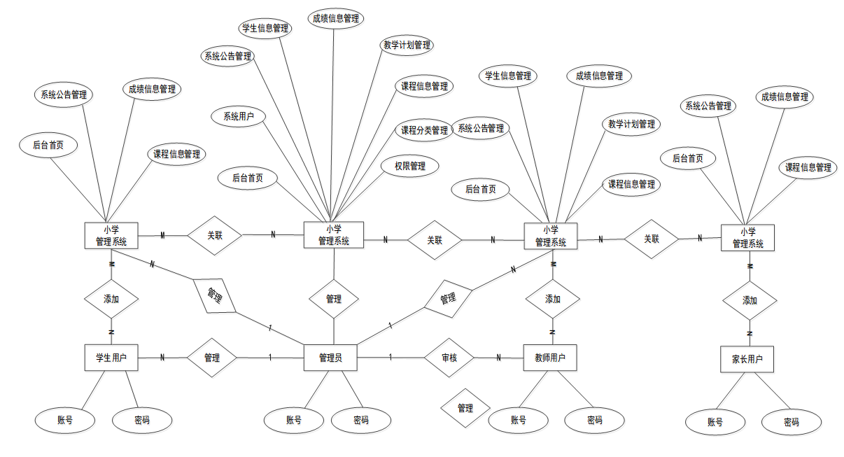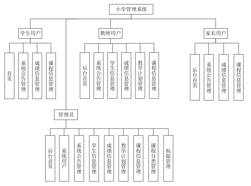 小学管理系统的设计在功能上划分为教师用户、学生用户和管理员三种角色。