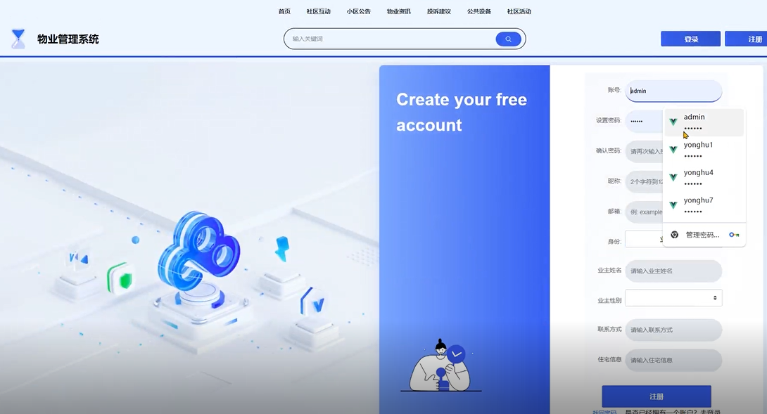 本研究的主要内容是构建物业管理系统。具体包括以下内容: