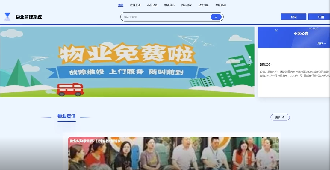 - 物业资讯:提供最新的物业管理信息,提升物业服务透明度。,物业新闻、政策法规等信息更新,物业服务指南和常见问题的解答,重要收费项目的说明和通知。