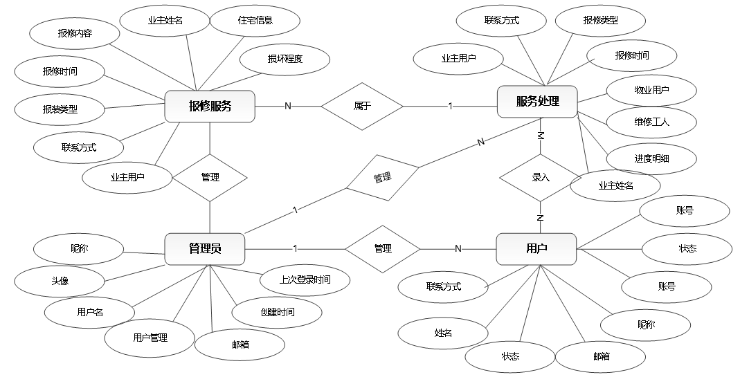 报修服务管理:处理提交报修请求,查看历史报修记录,报修状态跟踪。