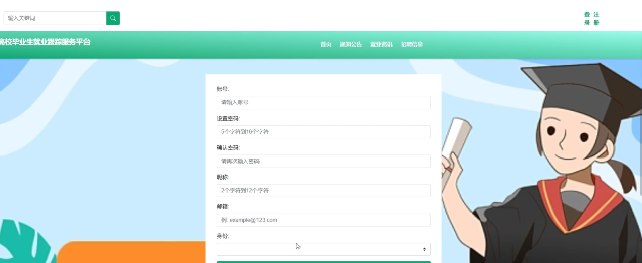 Keywords: Employment tracking service platform for college graduates; SpringBoot; Vue; MySQL.