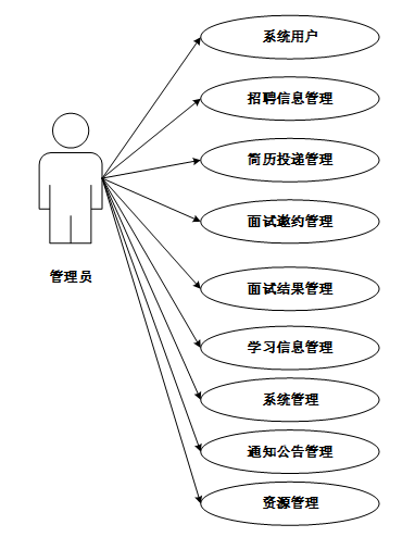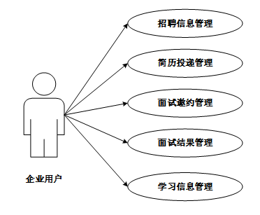 企业用户:招聘信息管理、简历投递管理、面试邀约管理、面试结果管理、学习信息管理等功能;用户用例图如图3-2所示。